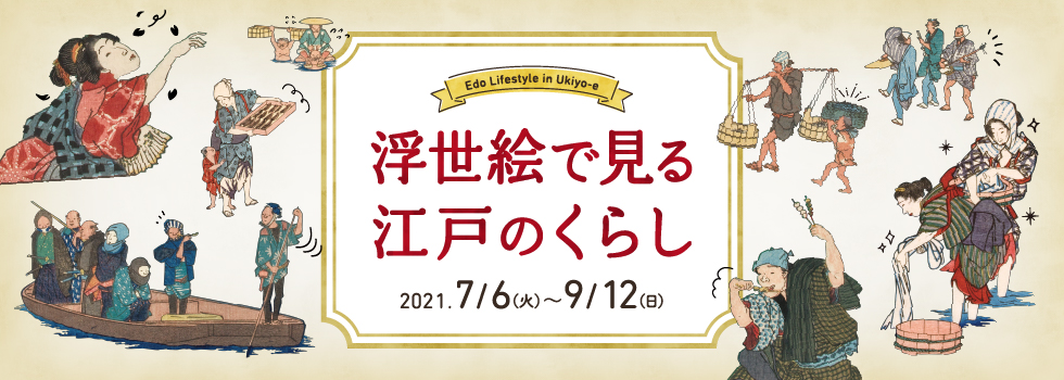 江戸時代の大衆印刷として発達した浮世絵版画には人々のくらしや文化、流行など様々なものが描き込まれ、当時の様子を今日の私たちに伝えてくれます。本展ではそんな江戸時代の人々の働くすがたや、日常生活の様子、娯楽など“くらし”にスポットを当てご紹介します。浮世絵で見る江戸のくらしをぜひお楽しみください。