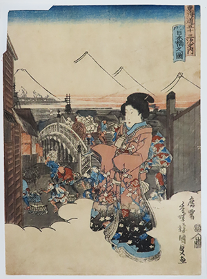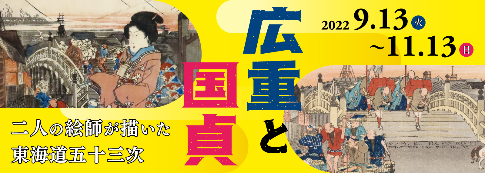 誰もが知っている歌川広重の『東海道五拾三次之内』(保永堂版)。この保永堂版東海道を背景に使った別の絵師が描いた「東海道五十三次」をご存じでしょうか。本展では歌川広重の『東海道五拾三次之内』と、歌川国貞の『東海道五十三次之内』、またその二人の合作の『雙筆五十三次』の3シリーズをご紹介します。江戸後期の歌川派を代表する二人の絵師が描いた「東海道五十三次」をお楽しみください。