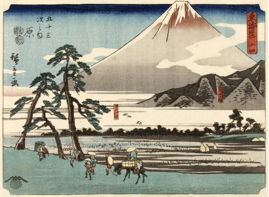 歌川広重が江戸日本橋から京三条大橋までの東海道の風景を描いた「東海道五十三次」には、それぞれの宿場にちなんださまざまな名物や名所が登場します。本展では広重が手掛けた東海道シリーズからPart1では『東海道』(蔦屋版東海道)、Part2では『東海道五拾三次之内』(保永堂版東海道)、Part3では『五十三次名所圖會』(竪絵東海道)の3つのシリーズ作品をそれぞれの会期にて展示。それぞれの「東海道五十三次」の作品と共に画中に描かれた名物・名所を紹介します。