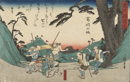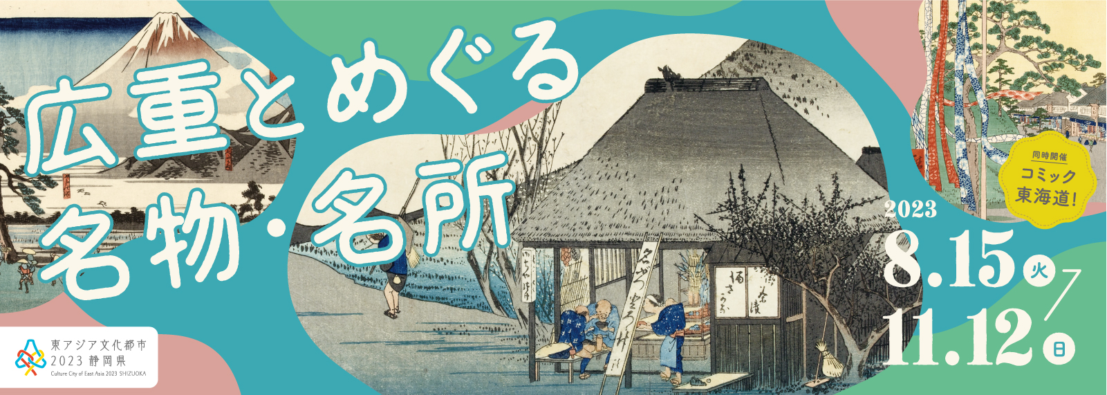 同時開催として小展示室では、大正時代の漫画家たちが描いた『東海道五十三次漫画絵巻』を中心に、広重が滑稽本『東海道中膝栗毛』を題材にした浮世絵『道中膝栗毛』などを紹介する「コミック東海道!」を開催します。