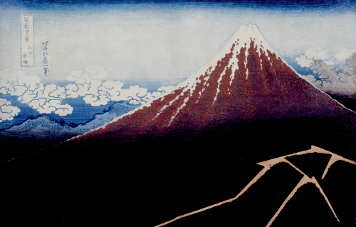 葛飾北斎がその代表作にもあげられる『冨嶽三十六景』を刊行したのは齢70を超えた天保二年(1831)頃。50年を超える画業で培った技術の粋を集めた意欲作ともいわれるこの作品は当初は画題の通り36図の予定でしたが、その人気によりさらに10図が追加され、合計で46図の揃物作品となっています。
