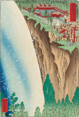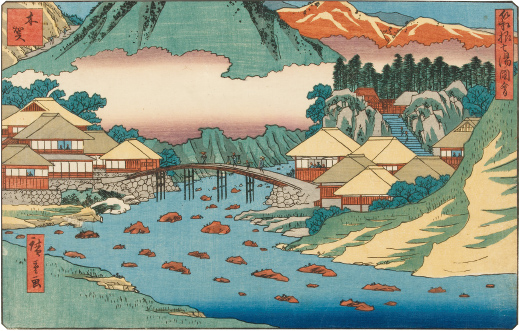 江戸時代の旅ブームを背景に浮世絵の人気ジャンルのひとつとして確立された名所絵。当時、一生に一度行けるかどうかという旅への憧れを持つ人々にとって、日本各地の風景を描いた名所絵は、諸国漫遊への思いを馳せることができる身近な娯楽として親しまれました。本展の大展示室では、広重をはじめとする幕末の浮世絵師たちが手掛けた様々なシリーズ作品から厳選した名所絵を紹介。また小展示室では旅に関する版本や旅道具を紹介します。諸国を旅する気分で江戸時代の日本の名所をお楽しみください。