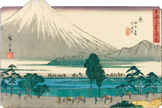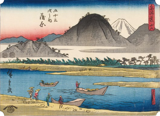 現在の静岡県中部の広大な範囲に該当する江戸時代の駿河国は、富士山や駿河湾など雄大な地形を有し、景勝地や旧跡など多くの名所が点在していました。本展では歌川広重が手掛けた東海道シリーズを中心に駿河国(沼津~島田)を描いた浮世絵を紹介します。様々な駿河の風景やそこに生きる人々の風俗をお楽しみください。